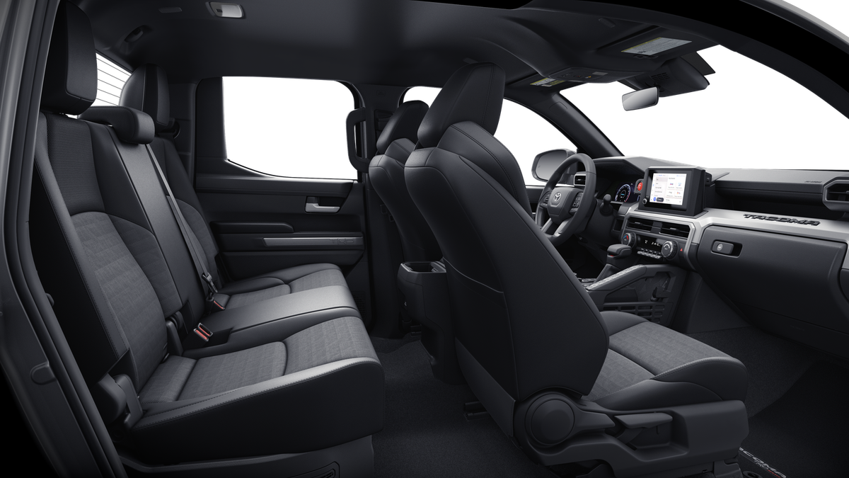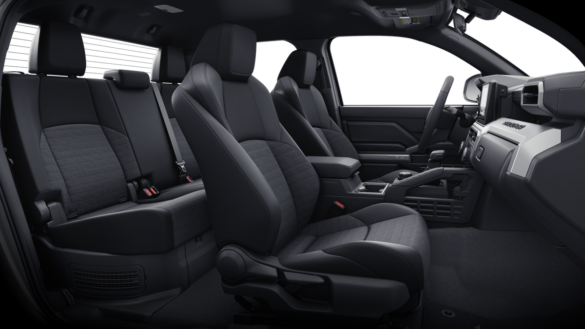 - Fabric-trimmed seats; 6-way manually adjustable driver and front passenger seats with 2-way power-adjustable lumbar support on driver's seat only