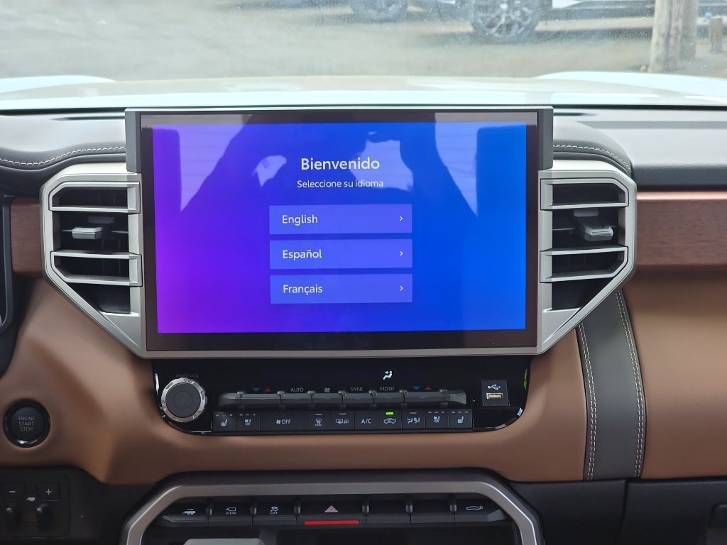 Protect the vehicle from unwanted accidents with a cutting edge backup camera system. Bluetooth® technology is built into the Toyota Tundra, keeping your hands on the steering wheel and your focus on the road. The installed navigation system will keep you on the right path. Never get into a cold vehicle again with the remote start feature on this model. The Toyota Tundra's Cross-Traffic Alert: Safeguarding you from unexpected traffic when reversing. This unit offers Apple CarPlay for seamless connectivity. The leather seats in this vehicle are a must for buyers looking for comfort, durability, and style. This 1/2 ton pickup is pure luxury with a heated steering wheel. This Toyota Tundra enhances safety with a blind spot monitor, alerting drivers to potential dangers in adjacent lanes. This model offers Android Auto for seamless smartphone integration. Maintaining a stable interior temperature in this unit is easy with the climate control system.